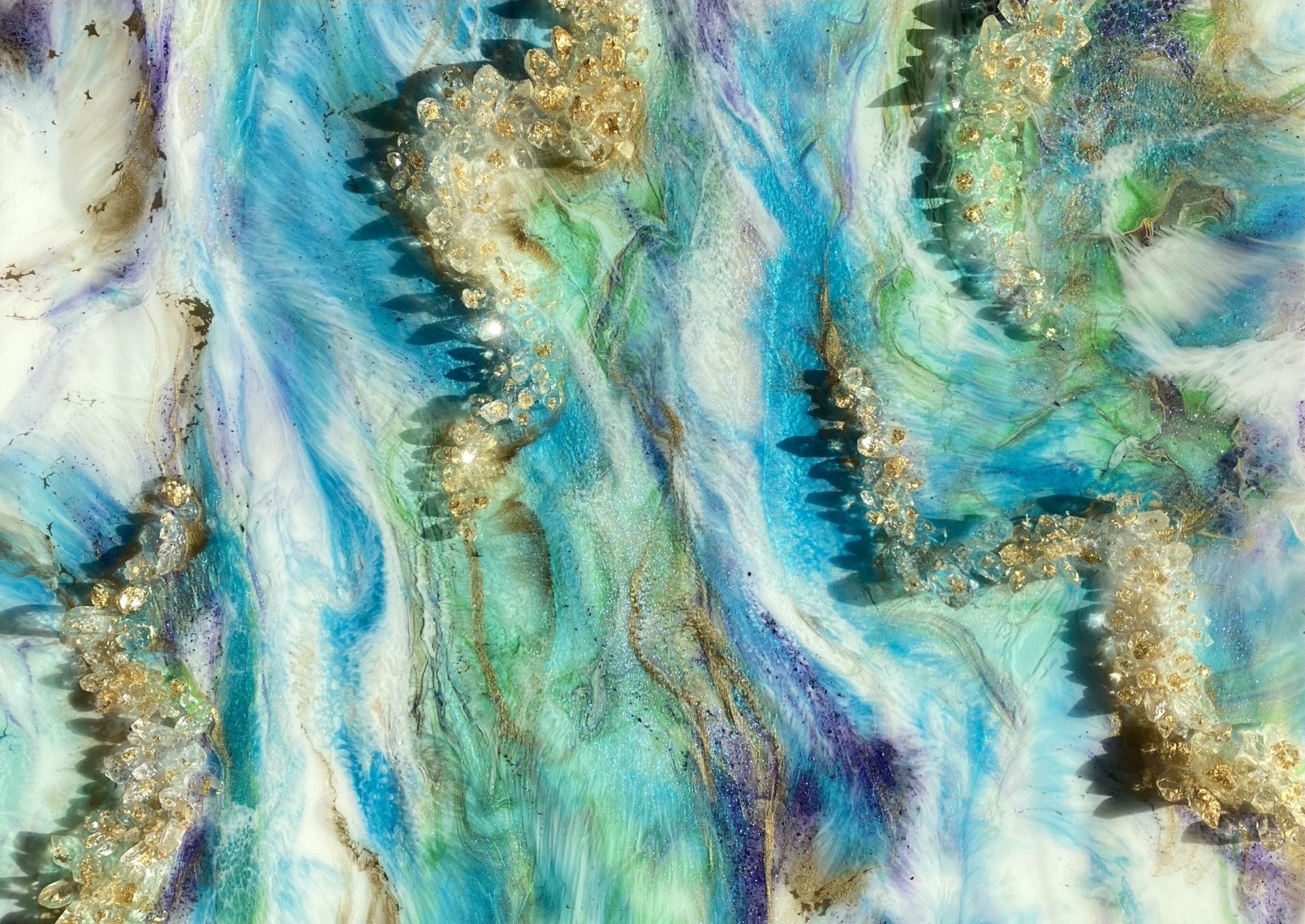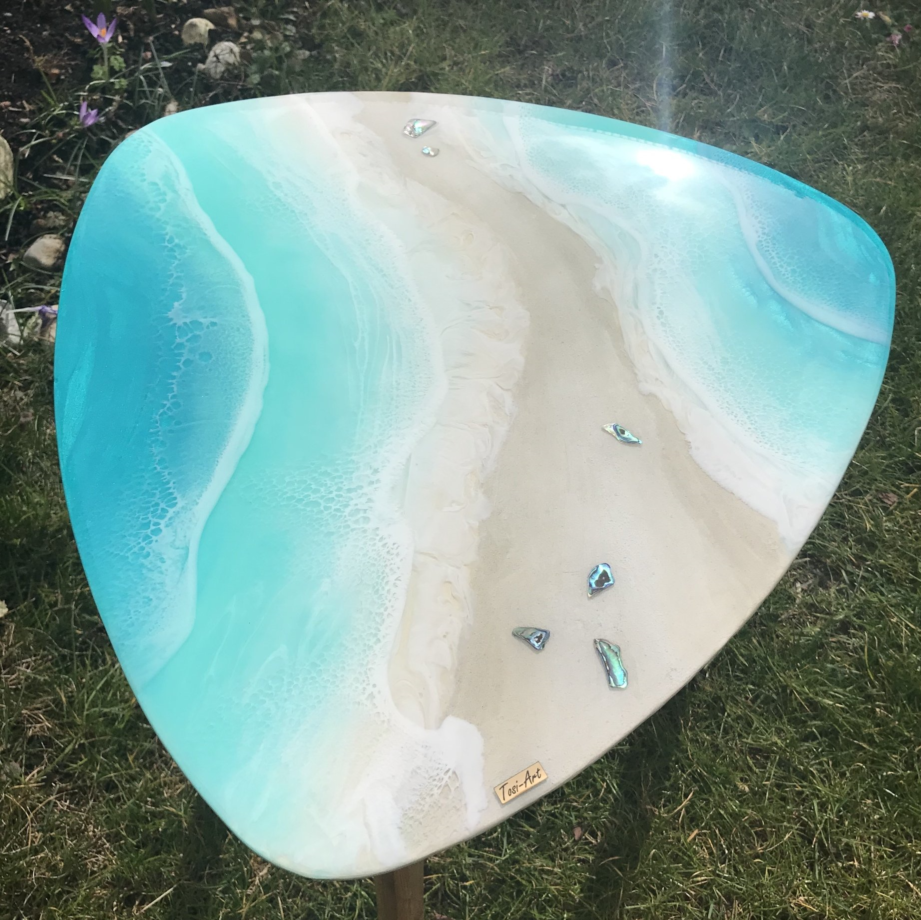 Seitdem male ich nicht nur abstrakte Kunstwerke, sondern fertige auch funktionale Kunst wie Tische, Wohnaccessoires und einzigartige Schmuckstücke. Für mich bedeutet Kunst auch Neues zu entdecken und mich nicht auf eine Stilrichtung festzulegen. Deshalb arbeite ich mit verschiedenen Materialien wie Acryl, Epoxidharz, Strukturpasten, Sand, Muscheln und Vielem mehr.